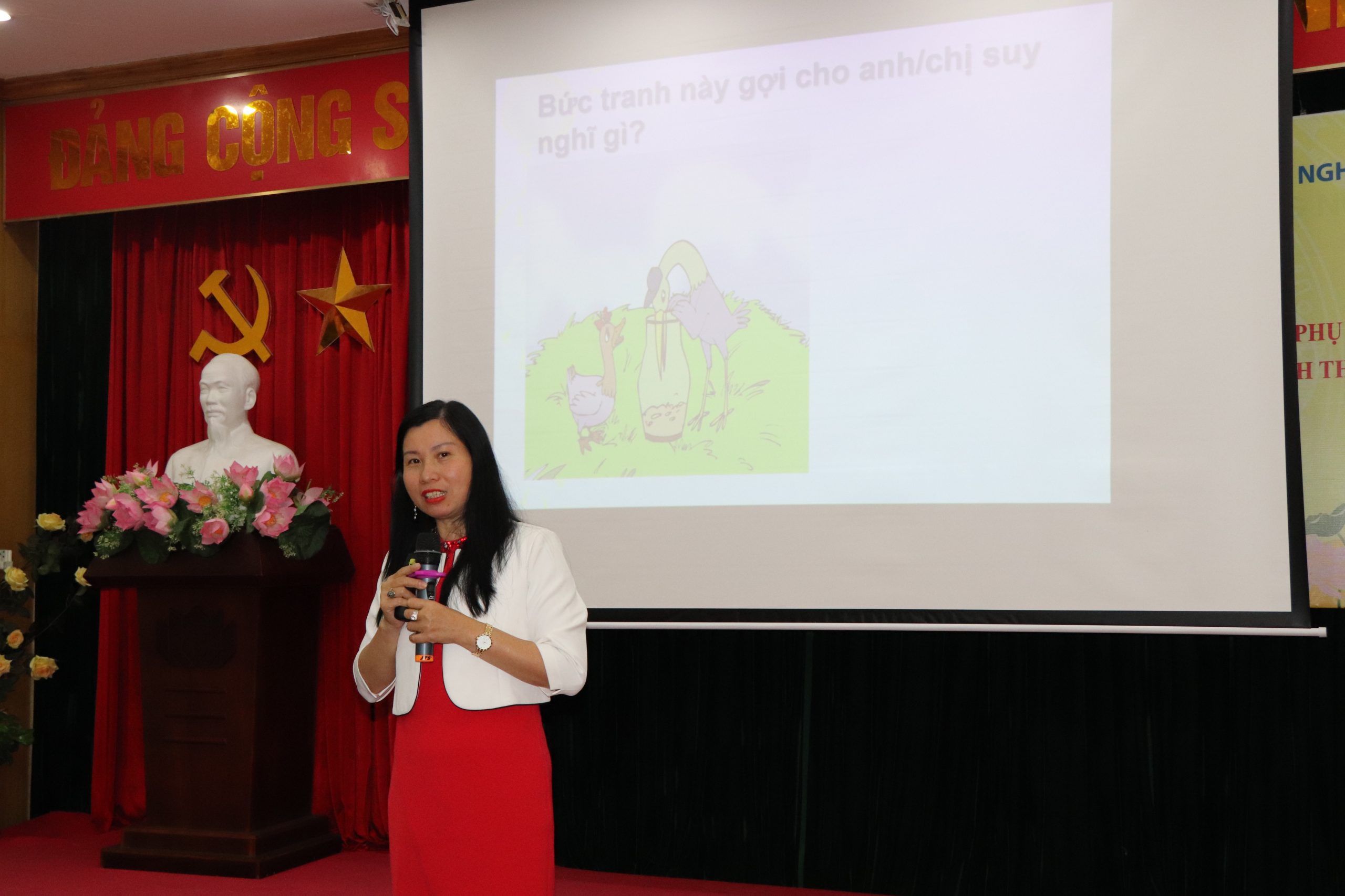 TS. Trần Thị Thu Hiền – Phó trưởng khoa Giới tính và phát triển, Học viện Phụ nữ Việt Nam trình bày tại hội nghị