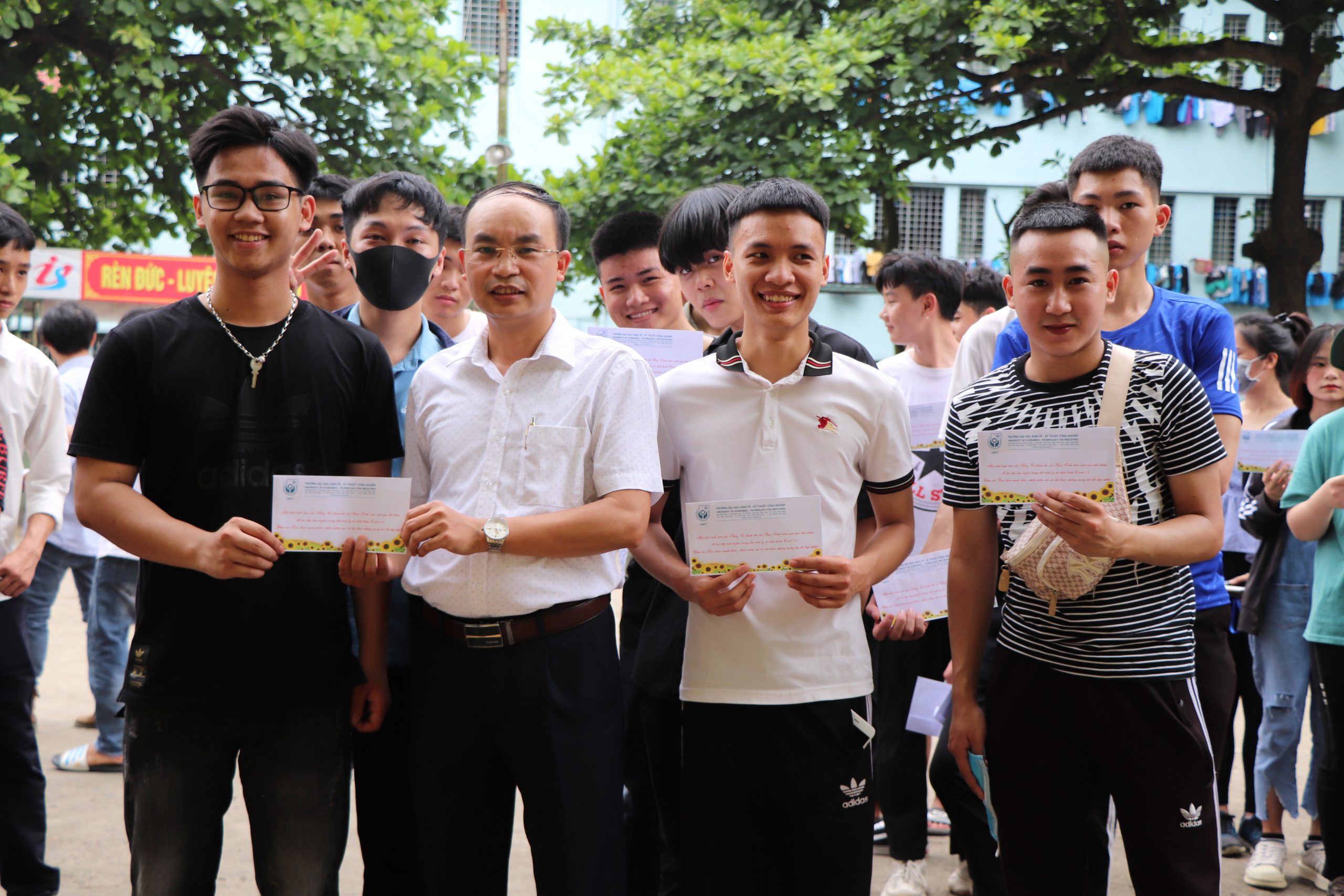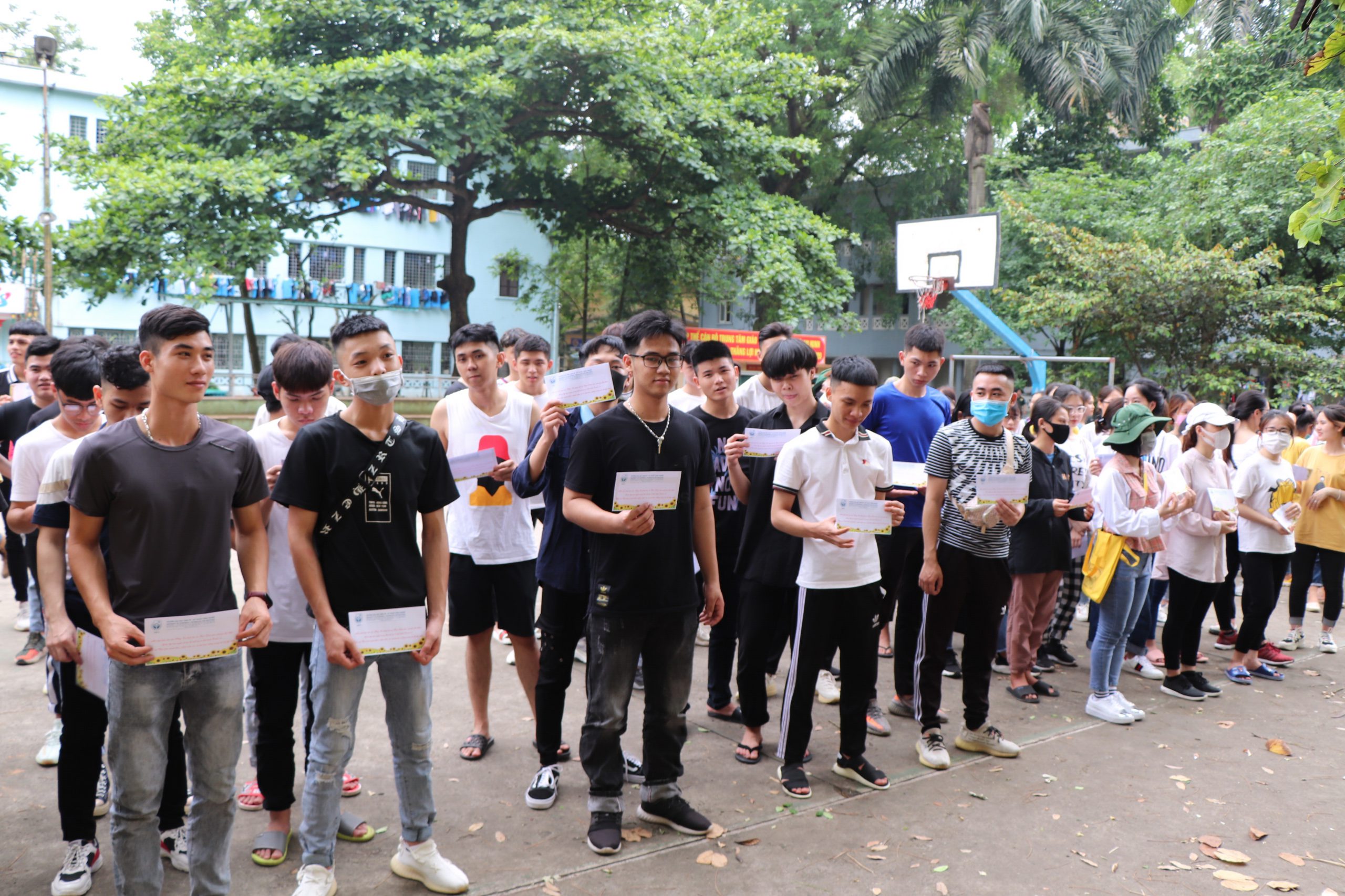 Tại Trung tâm giáo dục Quốc phòng An ninh, Trường Đại học Thể dục Thể thao Bắc Ninh, TX Từ Sơn, Bắc Ninh, sau khi làm thủ tục và bàn giao quân số cho cán bộ trung tâm quản lý. Đại diện cho các thầy, cô giáo Nhà trường đón các em, Th.S Nguyễn Như Vĩnh – Phó trưởng phòng Công tác sinh viên đã trao quà cho các em sinh viên mỗi em là 50.000đ đây là món quà được Ban chấp hành Công đoàn trường phát động phong trào trong toàn thể cán bộ, giảng viên, mỗi người trích 02 ngày lương để chia sẻ, động viên và hỗ trợ các em sinh viên kinh phí tiền internet phục vụ việc học tập trực tuyến.