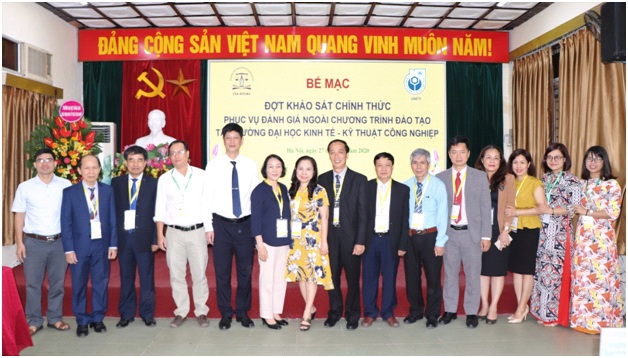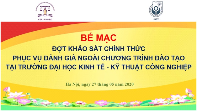 Tiếp nối thành công của hai đợt kiểm định với 6 chương trình đào tạo trình độ đại học các ngành đã được kiểm định là Quản trị kinh doanh, Kế toán, Công nghệ kỹ thuật Cơ khí,Công nghệ thực phẩm, Công nghệ kỹ thuật điện, điện tử và Tài chính – Ngân hàng. Nhà trường đã hoàn thành các bước tự đánh giá chương trình đào tạo ngành Công nghệ thông tin, Công nghệ kỹ thuật điện tử – viễn thông và ngành Công nghệ dệt, may. Được sự chấp thuận của Trung tâm Kiểm định chất lượng giáo dục – Hiệp hội các trường đại học, cao đẳng Việt Nam, Đoàn chuyên gia đánh giá ngoài đã tiến hành khảo sát sơ bộ tại trường và đã thực hiện đợt khảo sát chính thức từ ngày 22/05/2020 đến ngày 27/05/2020. Sau 01 tuần làm việc nghiêm túc, chặt chẽ theo đúng quy định, sáng ngày 27/05/2020 tại Hội trường HH1, cơ sở 456 Minh Khai, Hà Nội. Trường Đại học Kinh tế – Kỹ thuật Công nghiệp long trọng tổ chức Lễ bế mạc và ký biên bản hoàn thành đợt khảo sát chính thức phục vụ đánh giá ngoài chương trình đào tạo bậc đại học 03 ngành Công nghệ thông tin, Công nghệ kỹ thuật điện tử – viễn thông và ngành Công nghệ dệt, may. Buổi lễ Bế mạc được Ban tổ chức truyền hình trực tiếp qua ứng dụng họp trực tuyến Zoom Meeting cho cán bộ, giảng viên toàn trường theo dõi.