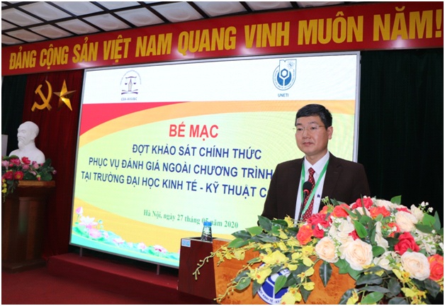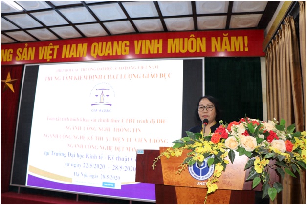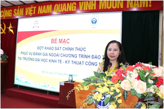 Phát biểu tại Lễ bế mạc, PGS.TS Nguyễn Phương Nga – Giám đốc Trung tâm KĐCLGD thuộc Hiệp hội các trường đại học, cao đẳng Việt Nam – Cố vấn đoàn đánh giá ngoài đã chúc mừng Nhà trường và Đoàn đánh giá ngoài đã hoàn thành các nội dung trong đợt đánh giá ngoài với kết quả cao và sẽ tiếp tục phối hợp cùng Nhà trường hoàn thiện hồ sơ thẩm định để cấp chứng nhận đạt chuẩn kiểm định theo quy định của Bộ Giáo dục và Đào tạo.