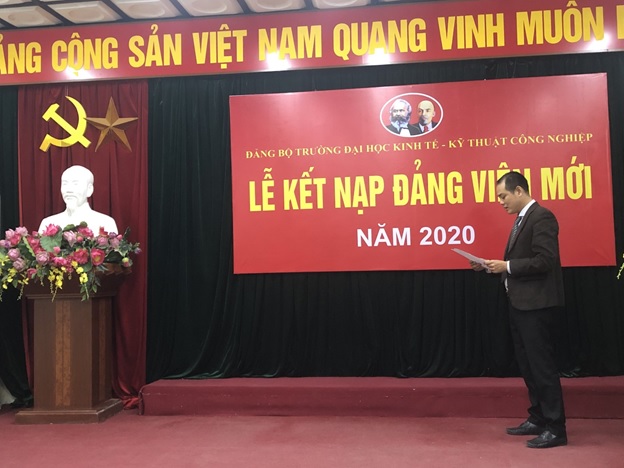 Thực hiện Điều lệ Đảng Cộng sản Việt Nam và Quy định số 45-QĐ/TW ngày 01/11/2011 của Ban chấp hành Trung Ương Đảng khóa XI về “Thi hành Điều lệ Đảng”. Căn cứ Quyết định của Ban Thường vụ Tỉnh ủy Nam Định về việc tổ chức lễ kết nạp cho Đảng viên mới. Được sự đồng ý của Đảng bộ Nhà trường, sáng ngày 20 tháng 10 năm 2020, tại Hội trường H.H1 – số 454 Minh Khai – Hà Nội, Chi bộ phòng Đào tạo đã long trọng tổ chức Lễ kết nạp Đảng viên mới cho quần chúng ưu tú Nguyễn Thiên Tân.