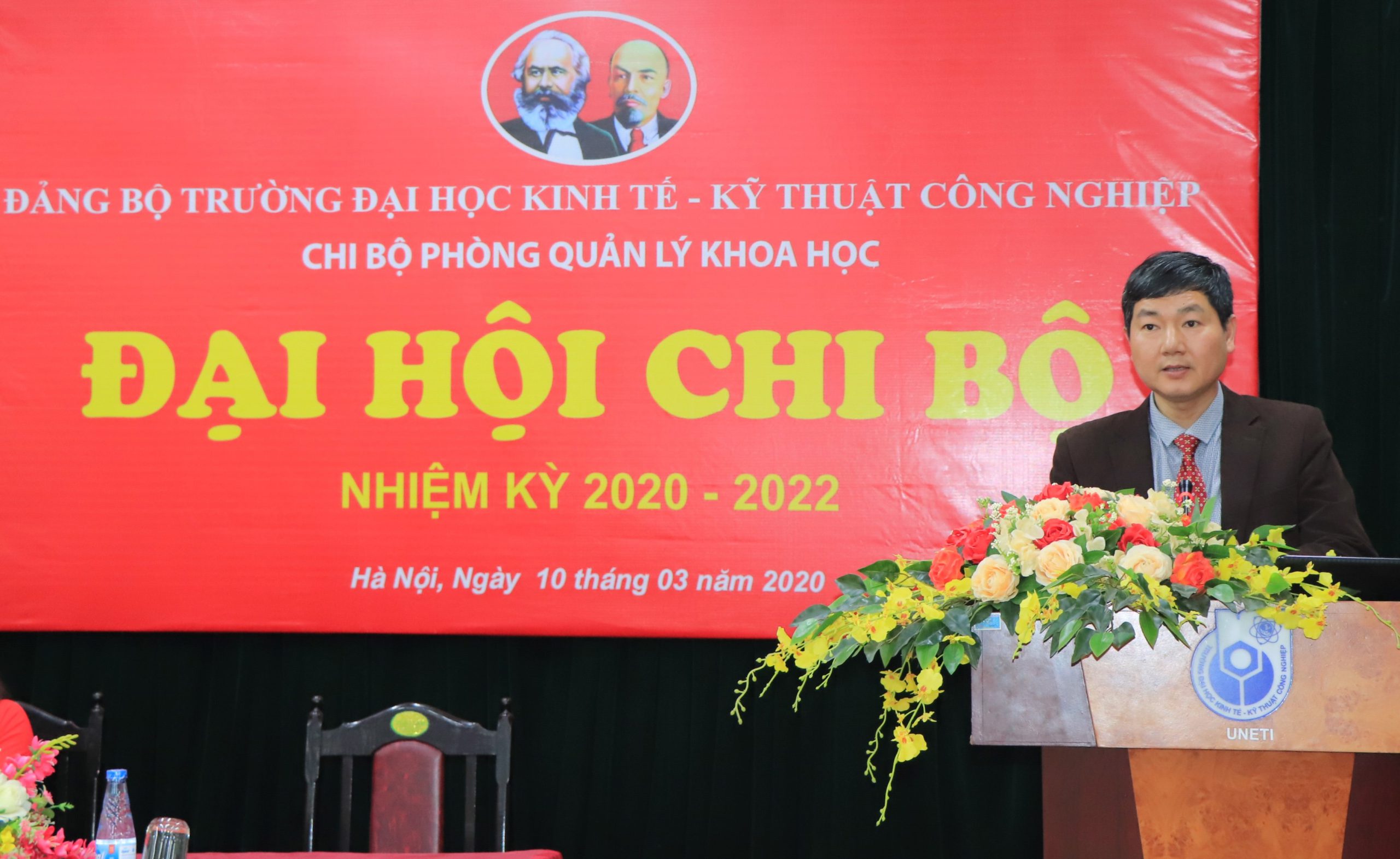 Phát biểu chỉ đạo Đại hội, đồng chí Trần Hoàng Long – Phó Bí thư Đảng ủy, Hiệu trưởng Nhà trường đã ghi nhận, đánh giá cao và biểu dương những thành tích của cán bộ, đảng viên chi bộ Phòng Quản lý khoa học đã đạt được trong nhiệm kỳ 2017-2020. Thông qua nội dung phát biểu, đồng chí Phó Bí thư Đảng ủy đã gợi mở một số nội dung để Đại hội thảo luận làm rõ những kết quả đạt được, những tồn tại, hạn chế, nguyên nhân và rút ra bài học kinh nghiệm trong nhiệm kỳ vừa qua; trên cơ sở đó đề ra các nội dung, giải pháp tổ chức thực hiện hiệu quả nghị quyết Đại hội nhiệm kỳ 2020 – 2022 đã đề ra.