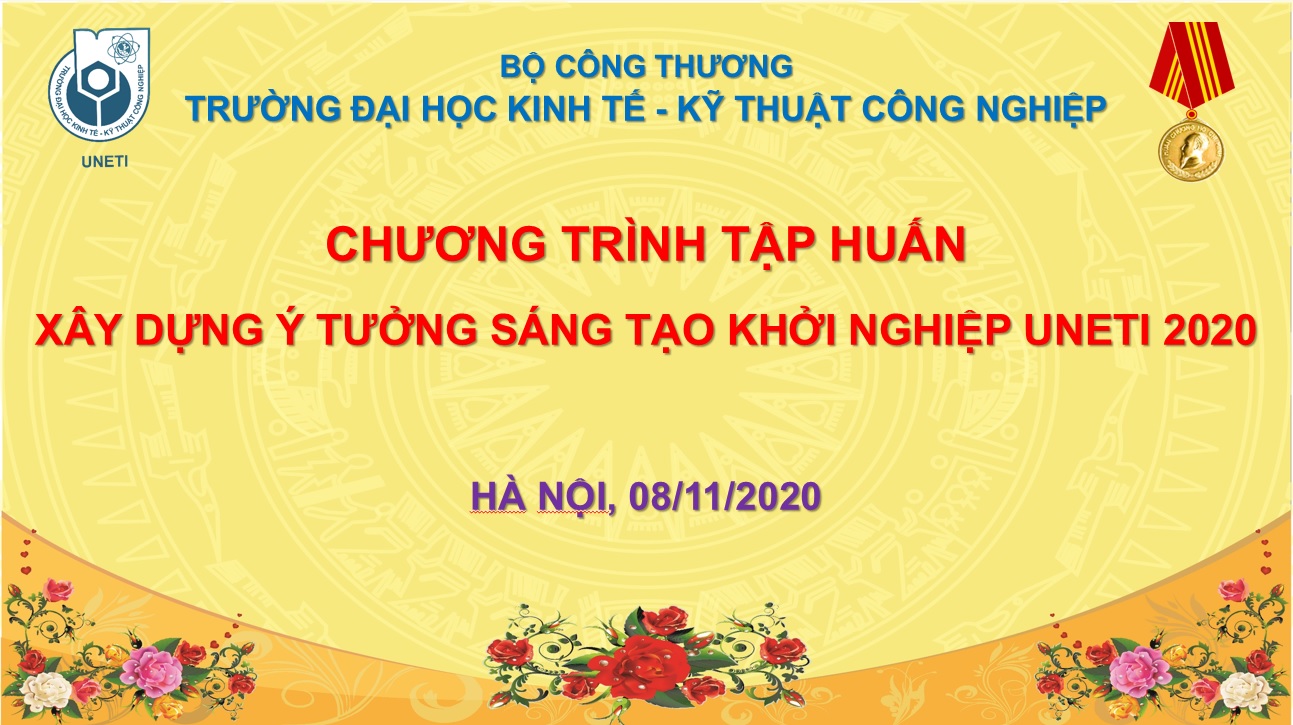 Thực hiện Kế hoạch số 654/KH-ĐHKTKTCN của Hiệu trưởng Trường Đại học Kinh tế – Kỹ thuật Công nghiệp về việc tập huấn cho cán bộ, giảng viên và sinh viên về ý tưởng sáng tạo khởi nghiệp. Chiều ngày 08/11/2020 tại Hội trường 3 tầng 218 Lĩnh Nam, Hà Nội và thông qua cầu truyền hình trực tuyến tại cơ sở 353 Trần Hưng Đạo, TP Nam Định. Ban tổ chức cuộc thi đã tổ chức chương trình tập huấn “Ý tưởng sáng tạo khởi nghiệp sinh viên Uneti năm học 2020 – 2021”.