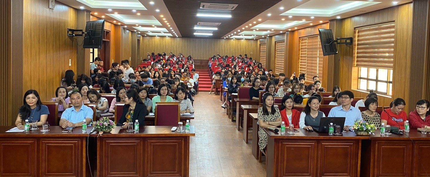 Các thầy, cô giáo và các em sinh viên dự tập huấn tại cơ sở 218 Lĩnh Nam, Hà Nội