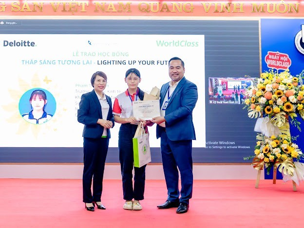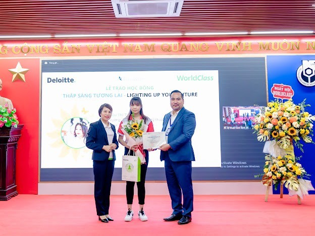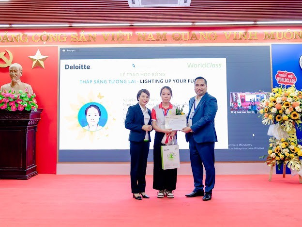 Thực hiện thông báo số 1053/TB-ĐHKTKTCN ngày 14 tháng 11 năm 2023 của Hiệu trưởng Trường Đại học Kinh tế – Kỹ thuật Công nghiệp về Kế hoạch tổ chức chương trình trao học bổng “Thắp sáng tương lai” 2023 và Ngày hội WorldClass “Bộ kỹ năng cần thiết cho tương lai nghề nghiệp”. Chiều ngày 28 tháng 11 tại phòng họp số 3 Nhà N.C1 cơ sở 353 Trần Hưng Đạo, TP Nam Định. Nhà trường đã phối hợp với công ty Deloitte Việt Nam tổ chức chương trình.