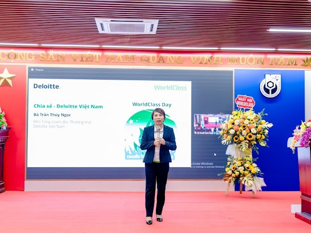 Diễn giả Bùi Thị Mai Hương – Giám đốc Kiểm toán Công ty Deloitte Việt Nam hướng dẫn sinh viên về “ Bộ kỹ năng cần thiết cho tương lai nghề nghiệp”