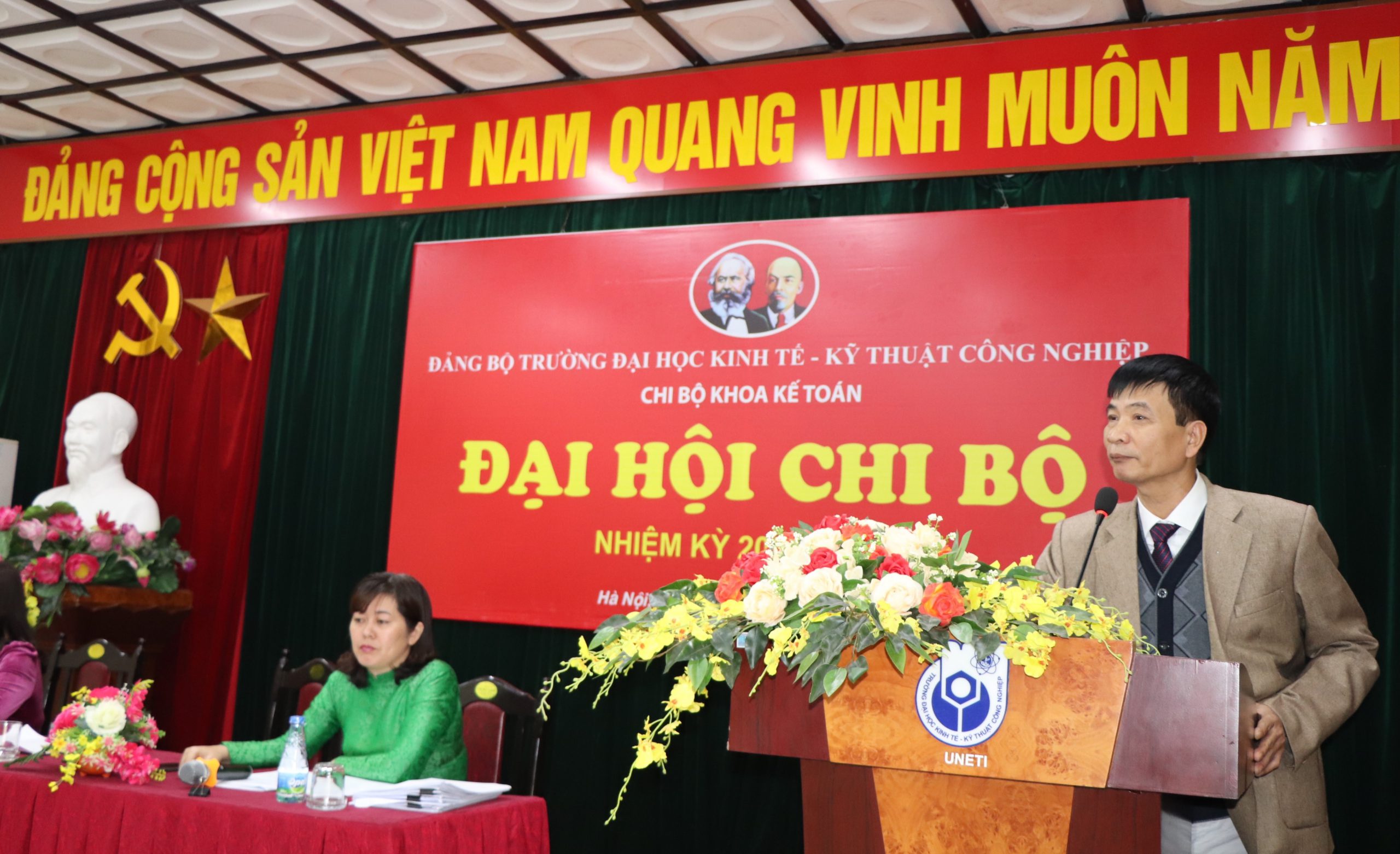 Đại hội đã nghe Báo cáo kiểm điểm sự lãnh đạo của Ban chi ủy nhiệm kỳ 2017 – 2020 và đề ra phương hướng, nhiệm vụ, giải pháp nhiệm kỳ 2020 – 2022 do đồng chí Ngô Bỉnh Duy – Phó Bí thư chi bộ Khoa Kế toán trình bày.