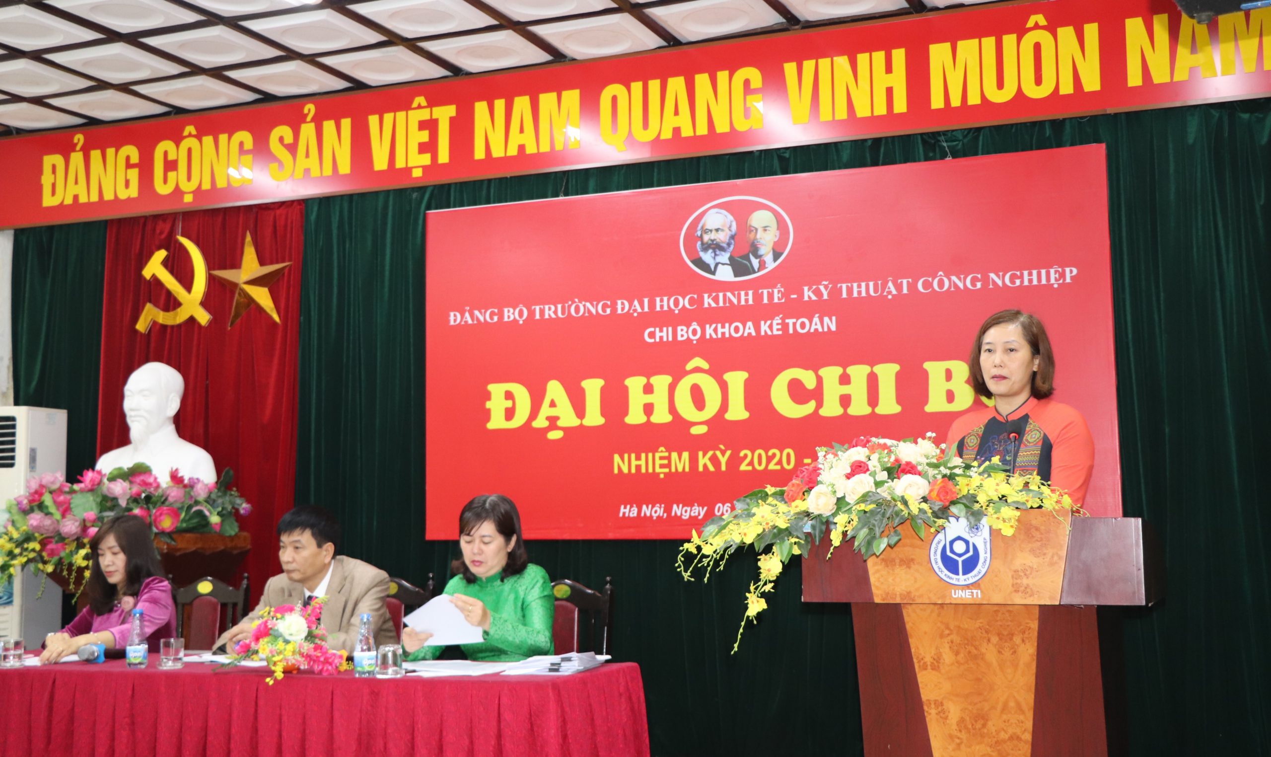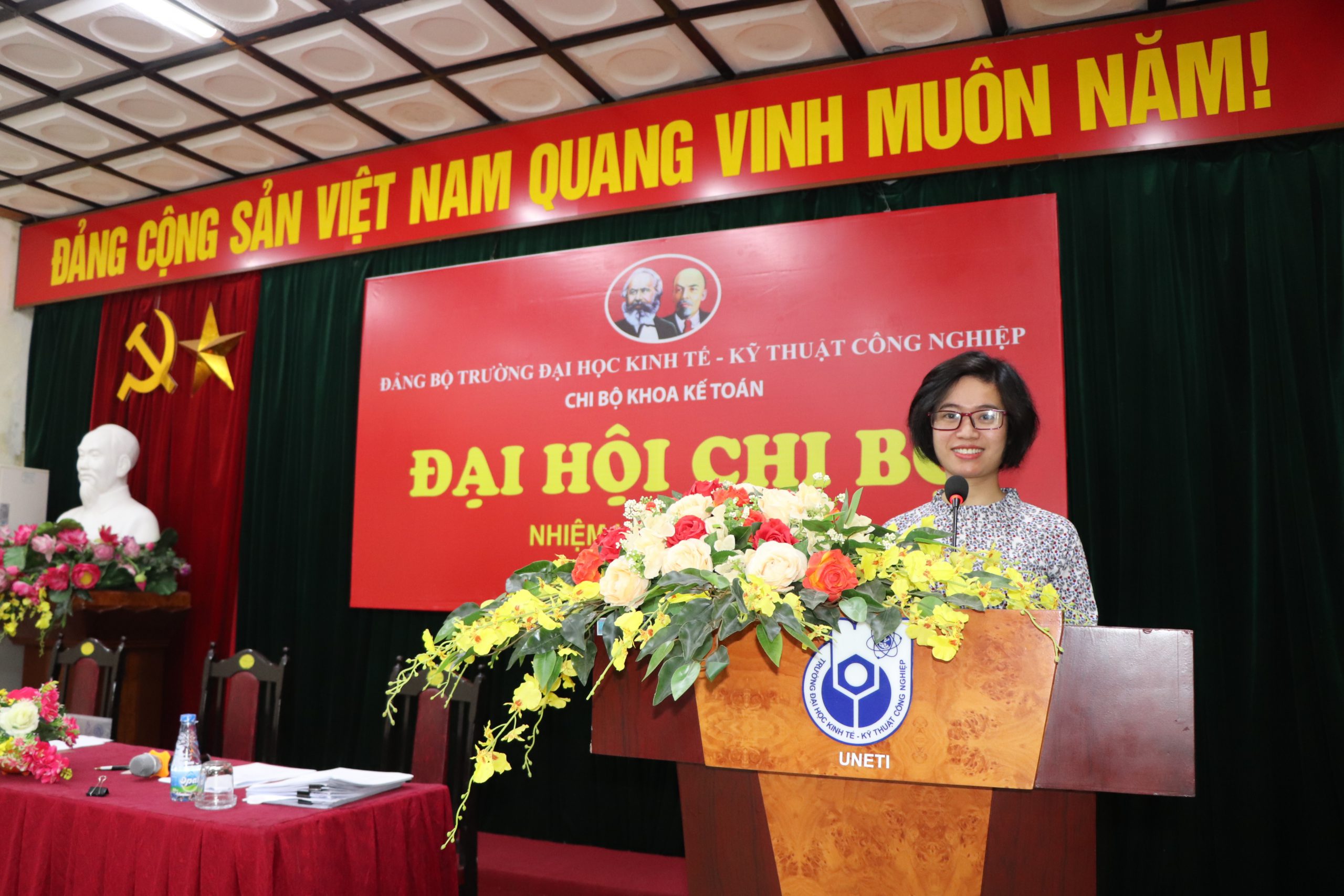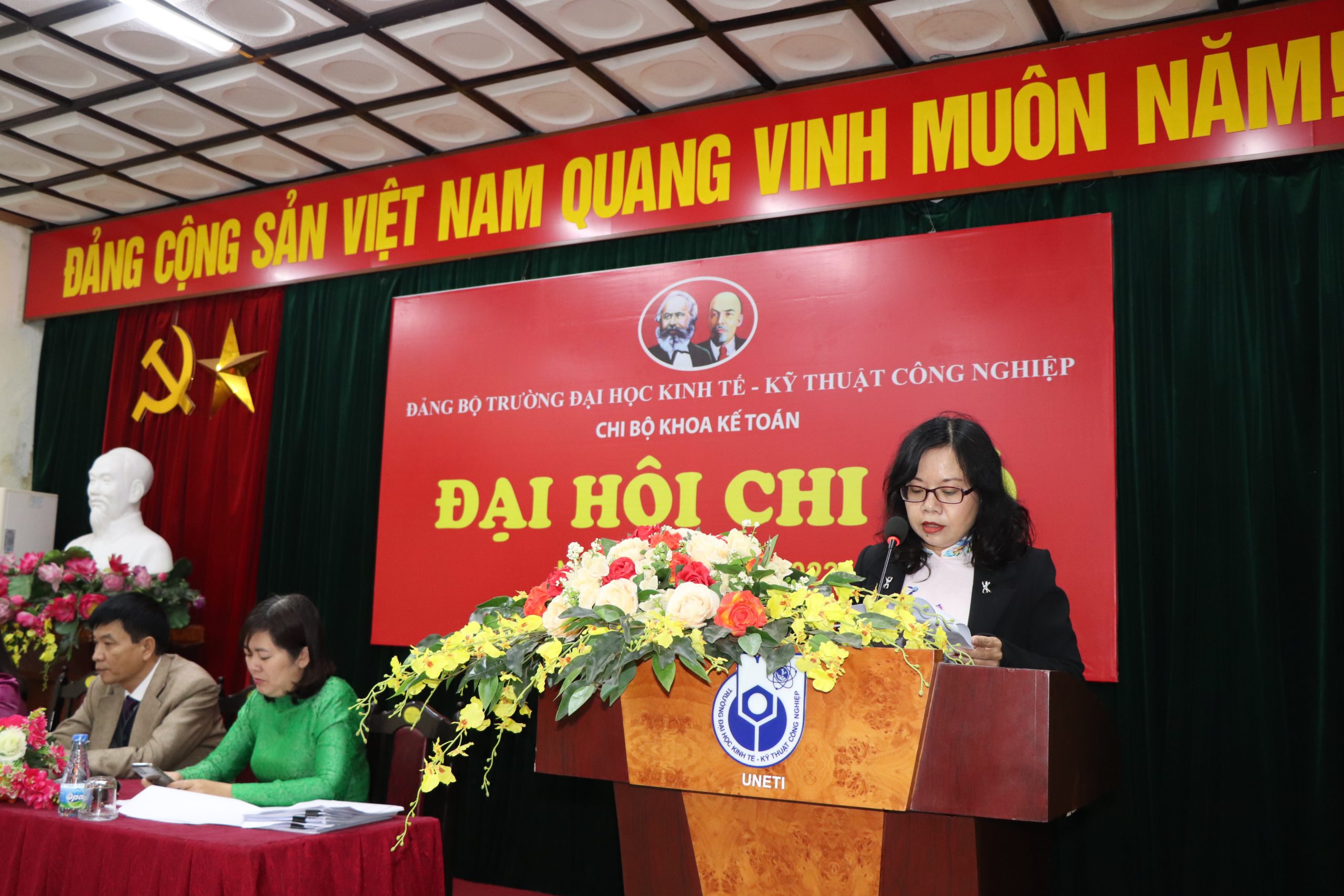 Sau các nghi lễ chào cờ, cử Quốc ca, Quốc tế ca trang trọng, thay mặt chi bộ Khoa Kế toán đồng chí Phạm Thị Lụa – Đảng ủy viên, Bí thư chi bộ nhiệm kỳ 2017 – 2020 đã trình bày Báo cáo chính trị của chi bộ nhiệm kỳ 2017 – 2020. Nội dung báo cáo đã chỉ rõ sự nhất quán của chi bộ trong việc lãnh đạo, chỉ đạo chính quyền, đoàn thể thực hiện kế hoạch nhiệm vụ trong nhiệm kỳ vừa qua và đề ra phương hướng, nhiệm vụ, giải pháp nhiệm kỳ 2020 – 2022.