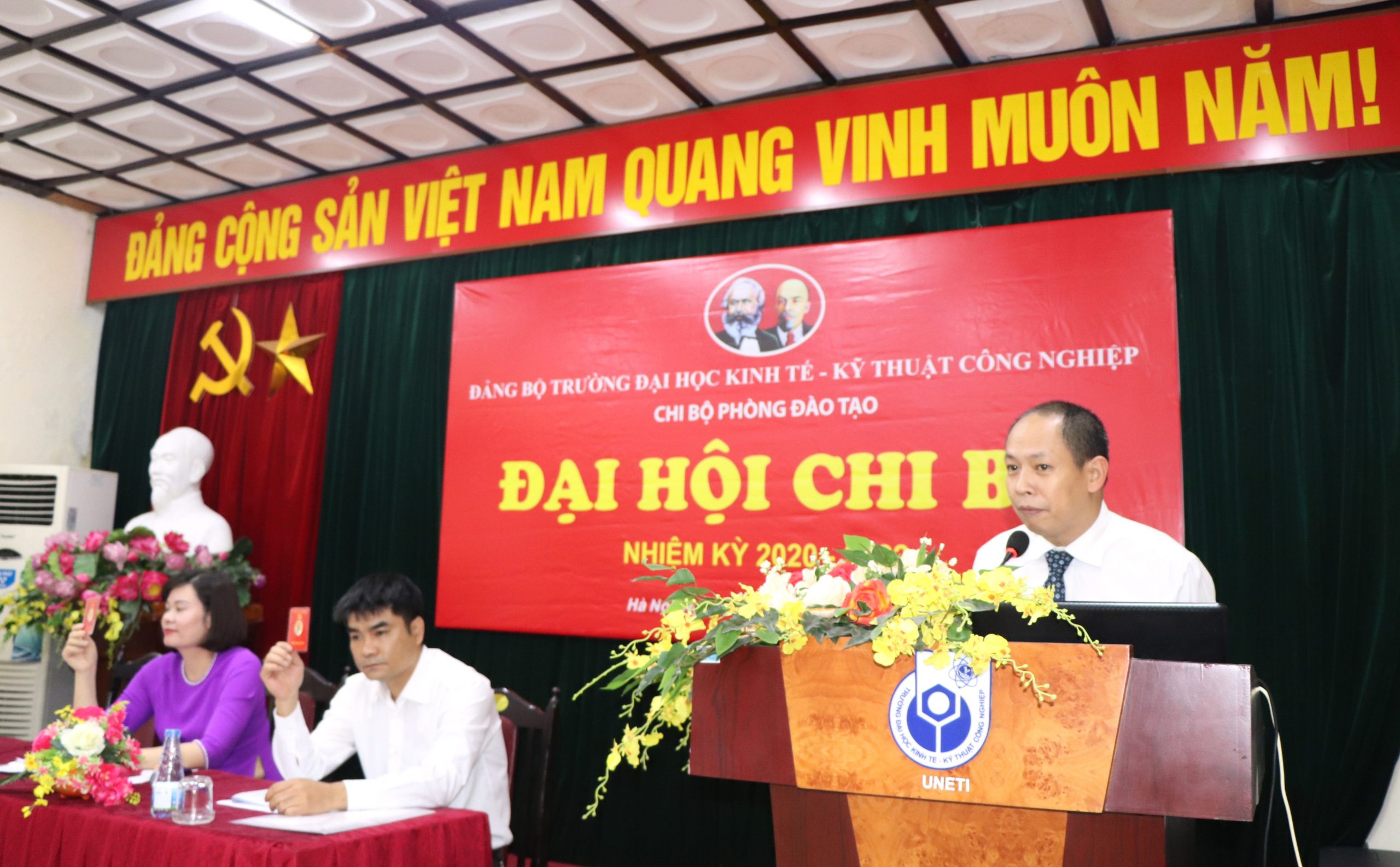 Phát biểu chỉ đạo Đại hội, đồng chí Trần Hoàng Long – Phó Bí thư Đảng ủy, Hiệu trưởng Nhà trường đánh giá cao nội dung trong báo cáo của chi bộ Phòng Đào tạo và ghi nhận các kết quả đã đạt được của chi bộ trong việc thực hiện nhiệm vụ lãnh đạo và chỉ đạo chính quyền đoàn thể hoàn thành tốt các nhiệm vụ được giao, đồng thời đồng chí Phó Bí thư Đảng ủy Nhà trường cũng gợi mở và làm rõ các nội dung đề xuất trong báo cáo chính trị tại Đại hội và có các định hướng công tác thực hiện nhiệm vụ để chi bộ thực hiện hiệu quả Nghị quyết Đại hội đề ra.