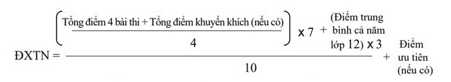 Do số lượng bài thi khác nhau, công thức tính điểm xét tốt nghiệp cho học sinh THPT và giáo dục thường xuyên cũng khác nhau. Công thức như sau: