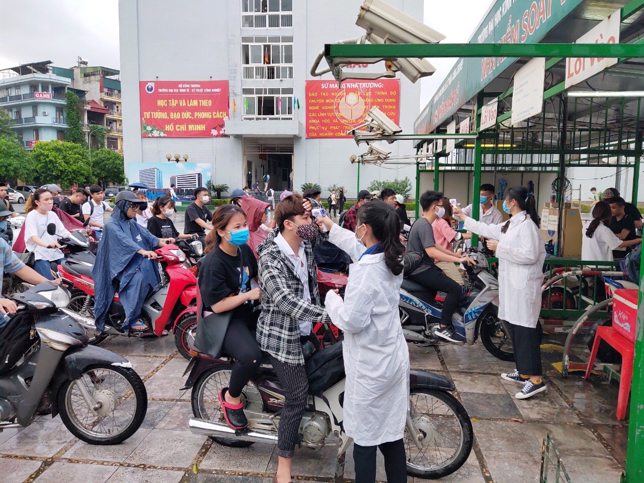 Công tác phòng chống dịch Covid-19 được tiến hành chặt chẽ, sinh viên được đo thân nhiệt trước khi vào khu vực giảng đường