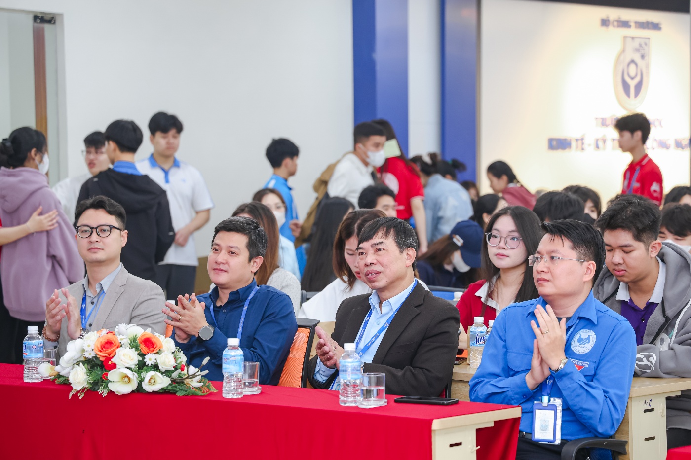 TS. Nguyễn Ngọc Khương – Phó Hiệu trưởng Nhà trường cùng các thầy, cô giáo lãnh đạo các đơn vị, đoàn thể tham dự và tặng hoa chúc mừng chương trình