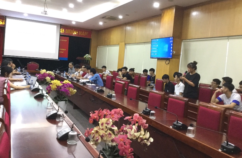 Sinh viên ngành Công nghệ Kỹ thuật Điều khiển và Tự động hóa trao đổi câu hỏi tại hội thảo