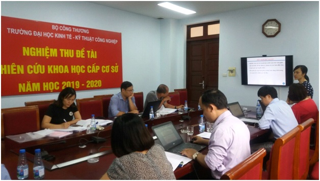 Căn cứ theo Quyết định 167/QĐ-ĐHKTKTCN ngày 21 tháng 5 của Hiệu trưởng Trường Đại học Kinh tế Kỹ thuật Công nghiệp, vào ngày 17 tháng 6 năm 2020 tại phòng 405 – nhà 9 tầng – 456 Minh Khai – Hà Nội. Khoa Công nghệ thông tin tổ chức nghiệm thu đề tài nghiên cứu khoa học cấp cơ sở năm học 2019 – 2020. Đến với buổi nghiệm thu có Hội đồng nghiệm thu đề tài và các Thầy giáo, Cô giáo trong Khoa Công nghệ thông tin tới dự. Trong năm học 2019 – 2020, Khoa CNTT được Nhà trường phê duyệt 05 đề tài NCKH cấp cơ sở. Các đề tài thuộc nhiều lĩnh vực như về xử lý ngôn ngữ tự nhiên, học máy, khai phá dữ liệu, công nghệ phần mềm, truyền thông đa phương tiện.