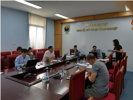 Mở đầu buổi nghiệm thu, ủy viên thư ký của hội đồng – ThS. Đoàn Thị Diệp Uyển – đại diện phòng Quản lý khoa học thay mặt cho hội đồng đọc Quyết định thành lập hội đồng nghiệm thu của Hiệu trưởng Trường Đại học Kinh tế Kỹ thuật công nghiệp. Sau đó hội đồng bắt đầu làm việc dưới sự điều hành của Chủ tịch hội đồng là TS.Cao Diệp Thắng – Phó Trưởng khoa Khoa học Cơ bản và ThS. Nguyễn Hoàng Chiến – Phó trưởng khoa – Phụ trách Khoa Công nghệ thông tin.