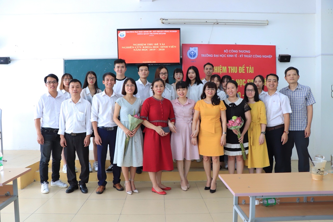 Để đẩy mạnh nghiên cứu khoa học trong sinh viên, cũng như ghi nhận sự cố gắng và nỗ lực trong nghiên cứu khoa học của sinh viên. Thực hiện theo Quyết định số 168/QĐ-ĐHKTKTCN ngày 21 tháng 5 năm 2020; Vào sáng 04/06/2020, tại Phòng họp ảo 218 Lĩnh Nam, Hà Nội và sáng ngày 05/6/2020 tại Phòng họp ảo 353 Trần Hưng Đạo, Nam Định, Khoa Quản trị kinh doanh đã tổ chức nghiệm thu các đề tài nghiên cứu khoa học sinh viên năm học 2019-2020.
