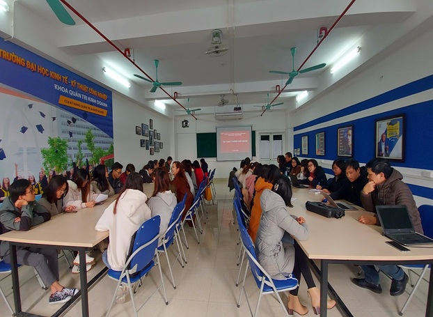 Tham gia buổi tập huấn có Ban chủ nhiệm khoa, Các Bộ môn cùng giảng viên, sinh viên trong khoa QTKD.