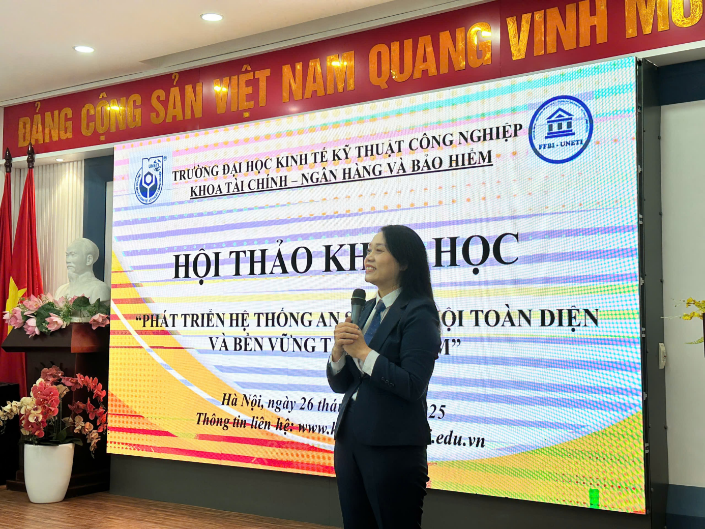 Thực hiện chủ trương của Ban Giám Hiệu Nhà trường về việc đẩy mạnh công tác hội thảo trong cán bộ giảng viên và sinh viên, ngày 26/11/2025 tại phòng hội thảo HA8 Lĩnh Nam, Hà Nội và phòng họp Meeting online, khoa Tài chính Ngân hàng và Bảo hiểm, trường Đại học Kinh tế – Kỹ thuật Công nghiệp tổ chức thành công hội thảo với chủ đề “Phát triển hệ thống an sinh xã hội toàn diện và bền vững tại Việt Nam”