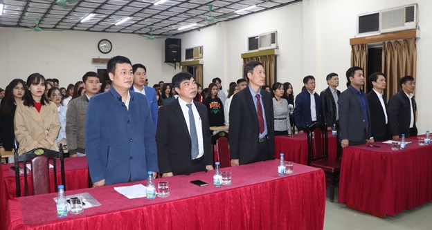 Các đại biểu và học viên làm Lễ chào cờ, hát Quốc ca và Quốc tế ca
