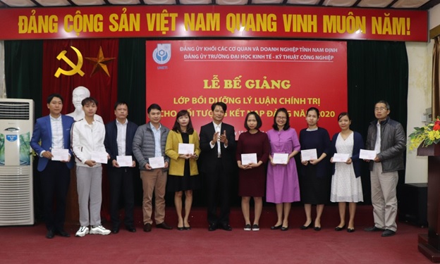 Lễ bế giảng lớp bồi dưỡng lý luận cho đối tượng kết nạp Đảng năm 2020 là cán bộ, giảng viên và sinh viên Nhà trường đã diễn ra thành công tốt đẹp đánh dấu một chặng đường mới trong quá trình phấn đấu, rèn luyện và tu dưỡng của mỗi học viên để sớm trở thành những đảng viên trong tương lai, góp phần quan trọng vào công tác xây dựng Đảng trong Nhà trường, đưa Đảng bộ Trường Đại học Kinh tế – Kỹ thuật Công nghiệp ngày càng vững mạnh.