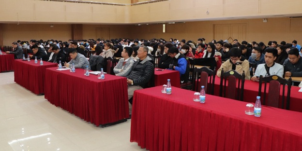 Cùng các thầy, cô là lãnh đạo các phòng, trung tâm và hơn 300 em sinh viên là thành viên Ban cán sự các lớp đến dự họp.
