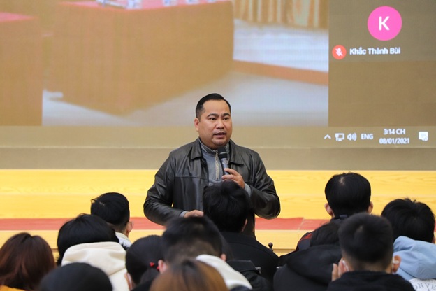 Trong chương trình buổi họp, BTC đã sơ kết, đánh giá nội dung công tác sinh viên học kỳ 1 năm học 2020-2021 và triển khai các nội dung công tác trọng tâm của học kỳ 2 năm học 2020-2021. sinh viên là cán sự các lớp đã được lắng nghe các thầy, cô giáo phòng CTSV, phòng Đào tạo, phòng Quản lý chất lượng trao đổi các nội dung đánh giá việc thực hiện, chấp hành các nội quy, quy định của Nhà trường; sinh hoạt đầu khóa, khám sức khỏe; nề nếp học tập; tình hình thu nộp học phí, BHYT, BHTT; thu nộp bổ sung hồ sơ sinh viên,… của các lớp sinh viên trong học kỳ 1 năm học 2020 – 2021; Hướng dẫn, triển khai thực hiện đánh giá điểm rèn luyện học kỳ 1 năm học 2020 -2021 theo quy định mới; Quán triệt chủ trương của Nhà trường về công tác chuẩn bị cho mô hình quản lý 5S từ học kỳ 2 năm học 2020 – 2021; quy định văn hóa học đường trong sinh viên và các nội dung công tác khác. Đồng thời trao đổi, trả lời nội dung các câu hỏi mà các em sinh viên quan tâm.