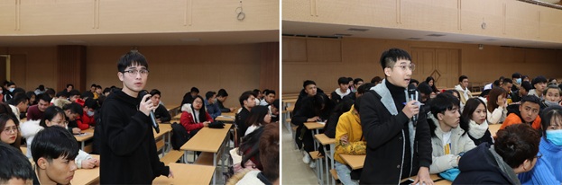 Thầy Lê Mạnh Thắng – Trưởng phòng CTSV và các thầy, cô giáo thuộc các đơn vị chức năng trả lời các câu hỏi của sinh viên tại buổi họp