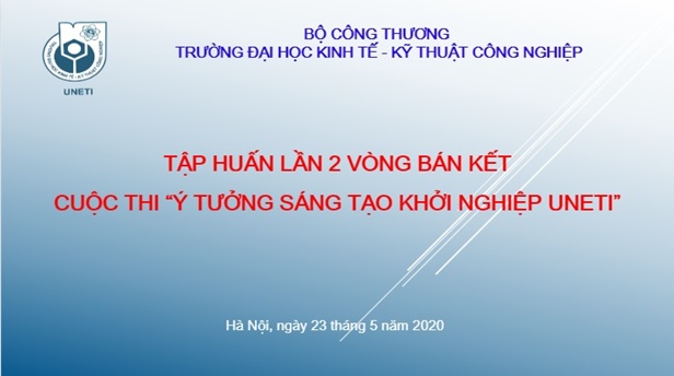 Cuộc thi “Ý tưởng sáng tạo khởi nghiệp sinh viên Uneti năm học 2019-2020” được phát động từ tháng 11/2019, qua vòng sơ loại Ban tổ chức và Ban giám khảo đã lựa chọn được 25 ý tưởng xuất sắc từ 45 đội thi để vào vòng bán kết. Để tiếp tục thực hiện kế hoạch của cuộc thi, sáng ngày 23/05/2020 tại Hội trường H.H1 khu giảng đường 454 Minh Khai, Hà Nội. Ban tổ chức cuộc thi đã tổ chức tập huấn lần 2 vòng Bán kết cuộc thi “Ý tưởng sáng tạo khởi nghiệp sinh viên Uneti” với mục đích tổng kết, tóm tắt kết quả đạt được của các nhóm sinh viên đồng thời trao đổi, chia sẻ, thảo luận về cách thức hoàn thiện hồ sơ thuyết minh vòng bán kết.