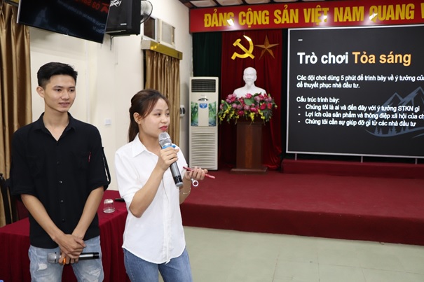 Đại diện các đội lên trình bày ý tưởng tại buổi tập huấn