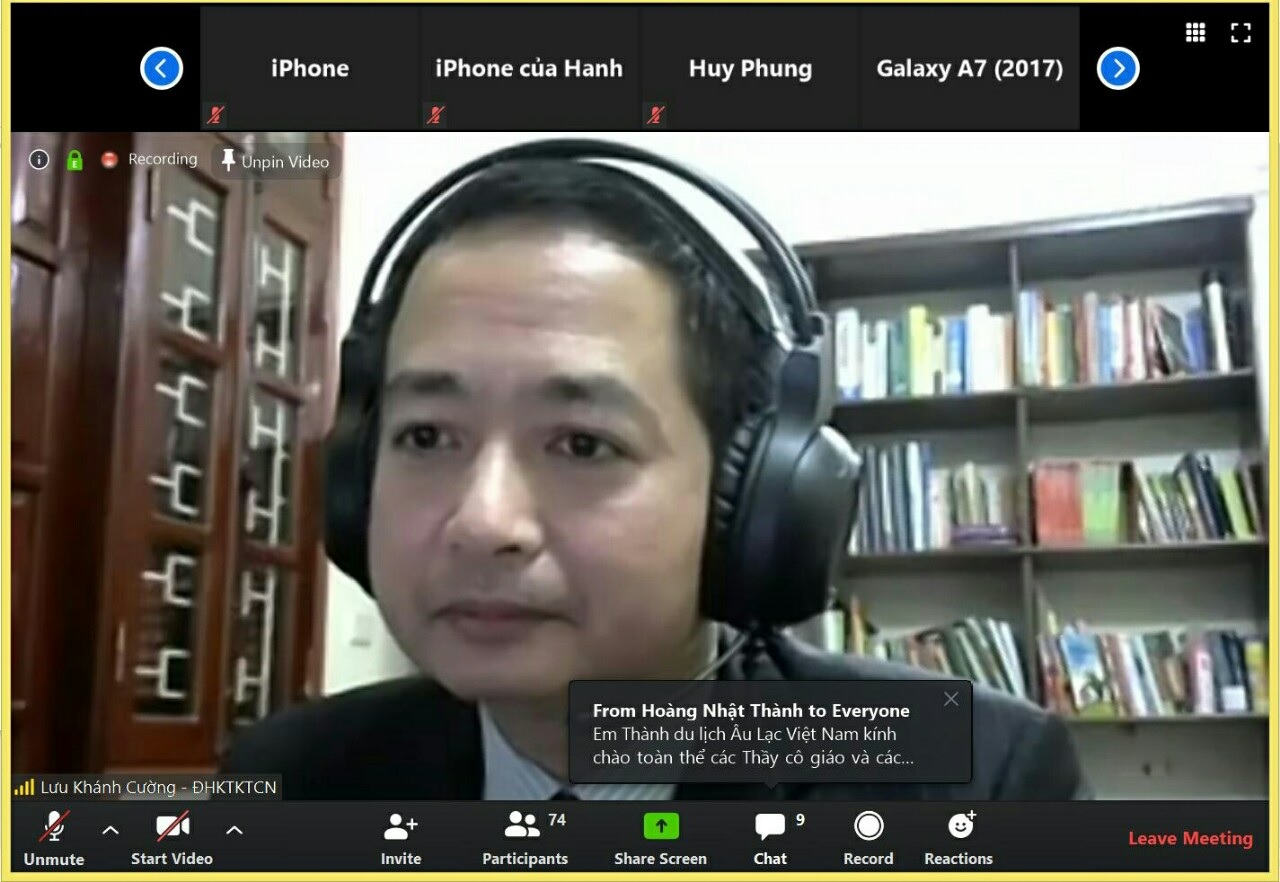 Nhằm tăng cường hợp tác, triển khai dự án liên kết, trao đổi giáo dục theo định hướng phát triển Nhà trường – Doanh nghiệp của Trường Đại học Kinh tế – Kỹ thuật Công nghiệp (UNETI) trong thời gian tới, và để phòng, chống Đại dịch Covid 19 sáng 20/03/2020, Trung tâm Hợp tác quốc tế tổ chức thành công Tọa đàm giới thiệu Chương trình học bổng hợp tác Nhà trường – Doanh nghiệp thực tập 01 năm của Trường Đại học Chien Hsin và Trường Đại học Hoa Hạ – Đài Loan trực tuyến trên Zoom.