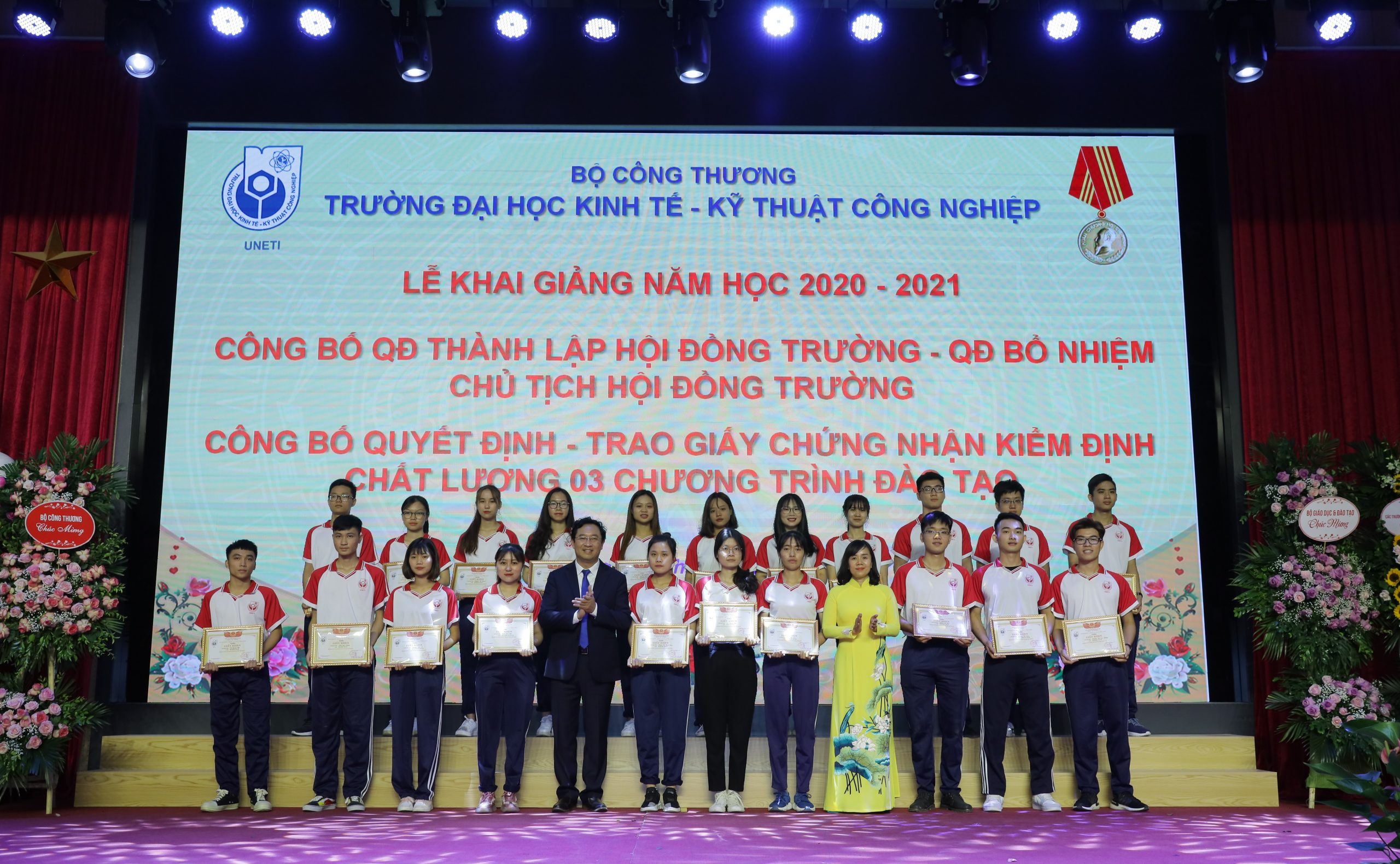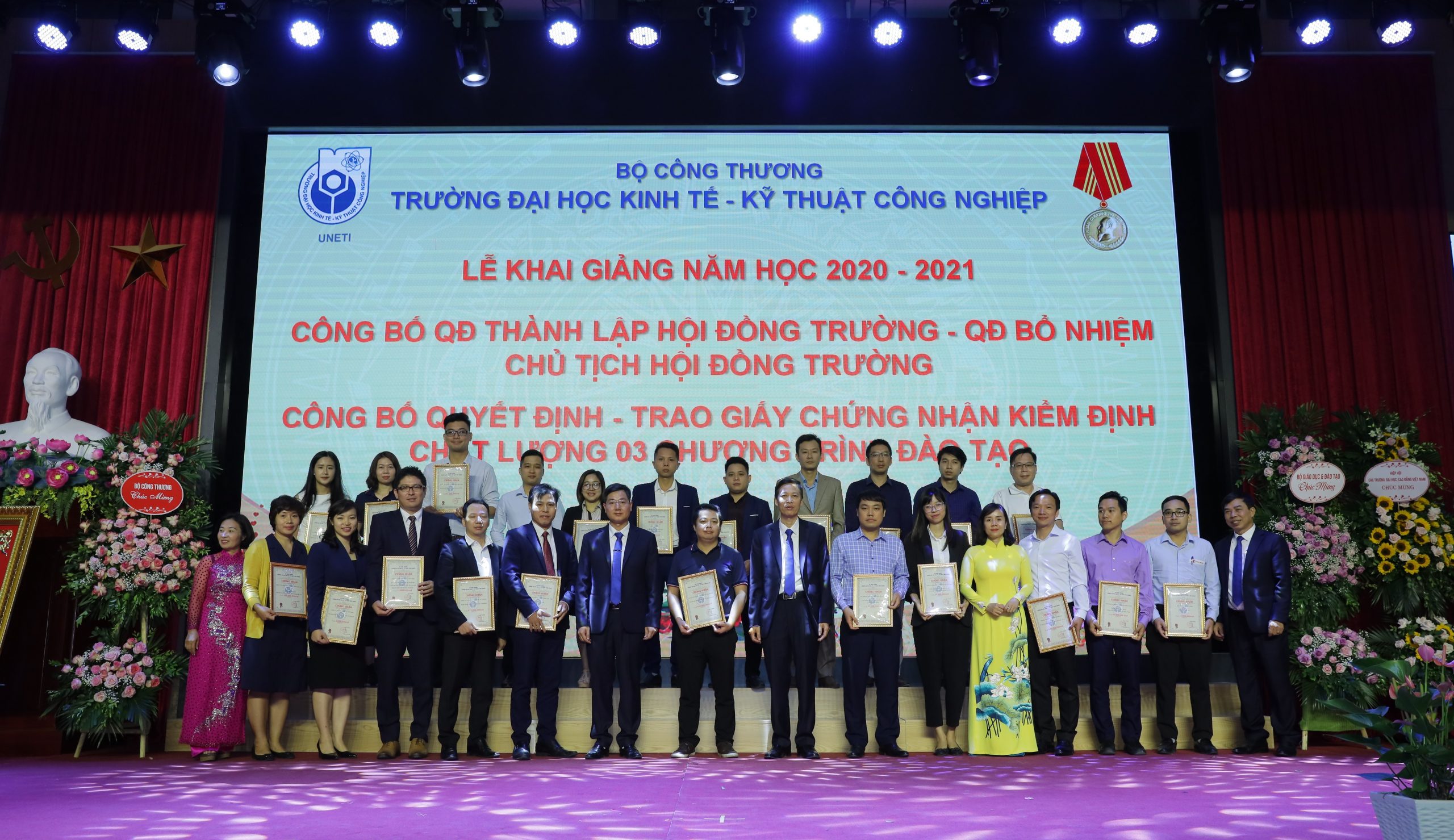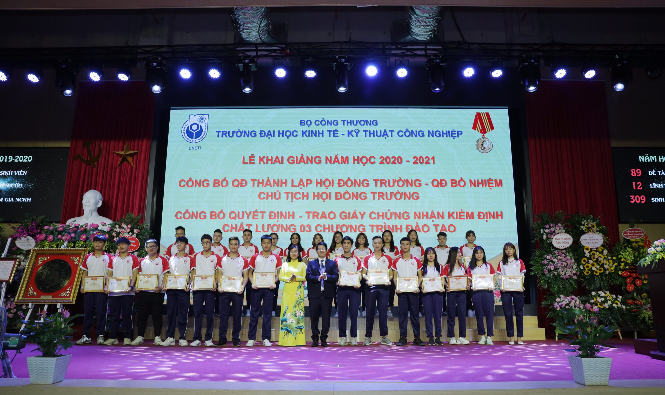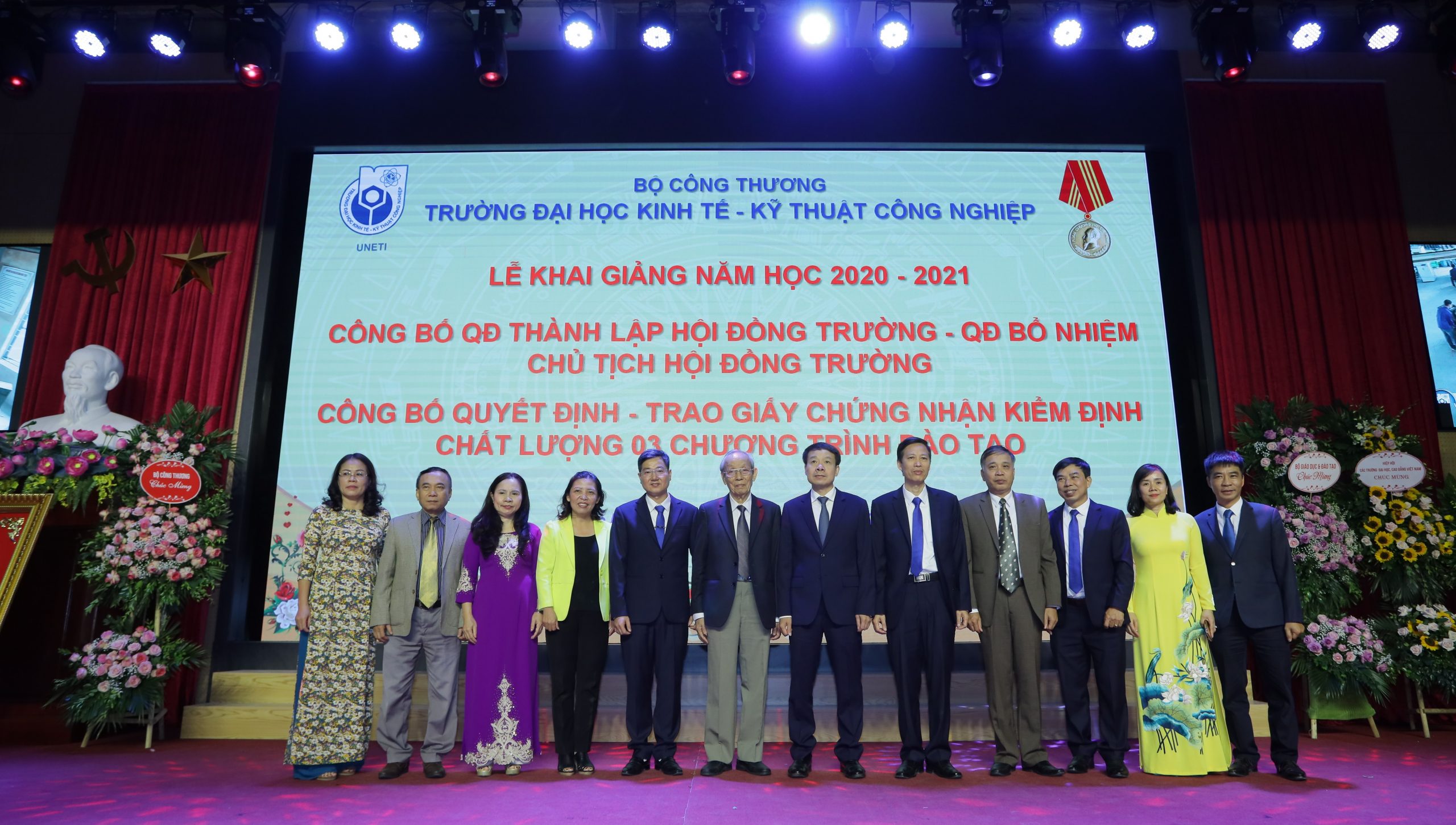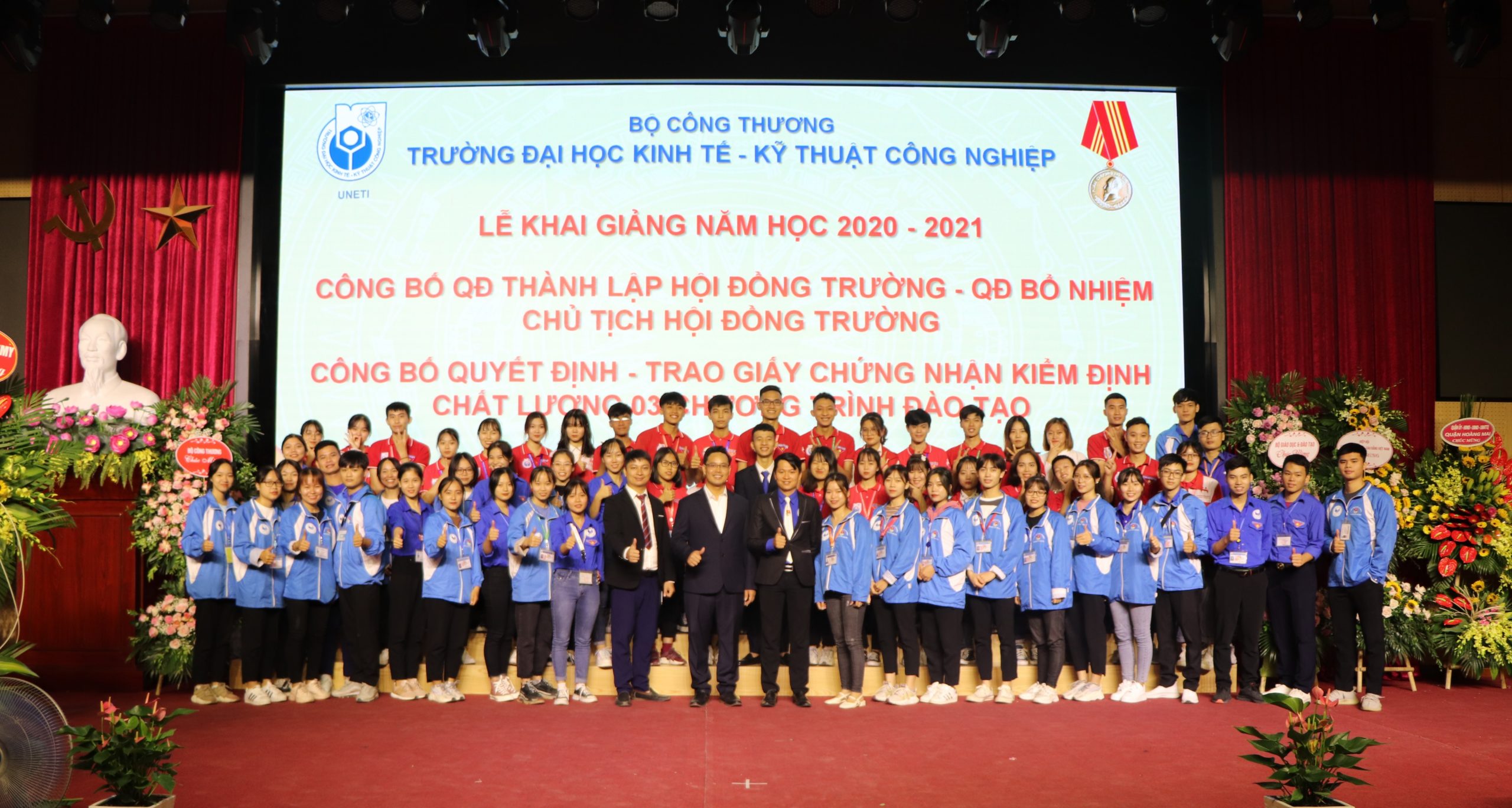 Trong không khí vui tươi, phấn khởi của toàn trường hoàn thành xuất sắc nhiệm vụ năm học 2019-2020 thực hiện thắng lợi công tác tuyển sinh hệ Đại học chính quy khóa 14 năm 2020. Sáng ngày 17/10/2020 tại hội trường 3 tầng, số 218 Lĩnh Nam, Hoàng Mai, Hà Nội. Trường Đại học Kinh tế – Kỹ thuật Công nghiệp long trọng tổ chức Lễ Khai giảng năm học mới 2020 – 2021; Công bố Quyết định thành lập Hội đồng trường – Quyết định bổ nhiệm Chủ tịch Hội đồng trường và Công bố Quyết định – Trao giấy chứng nhận kiểm định chất lượng 03 Chương trình đào tạo ngành Công nghệ Dệt, May; Công nghệ thông tin và Công nghệ kỹ thuật điện tử – viễn thông.