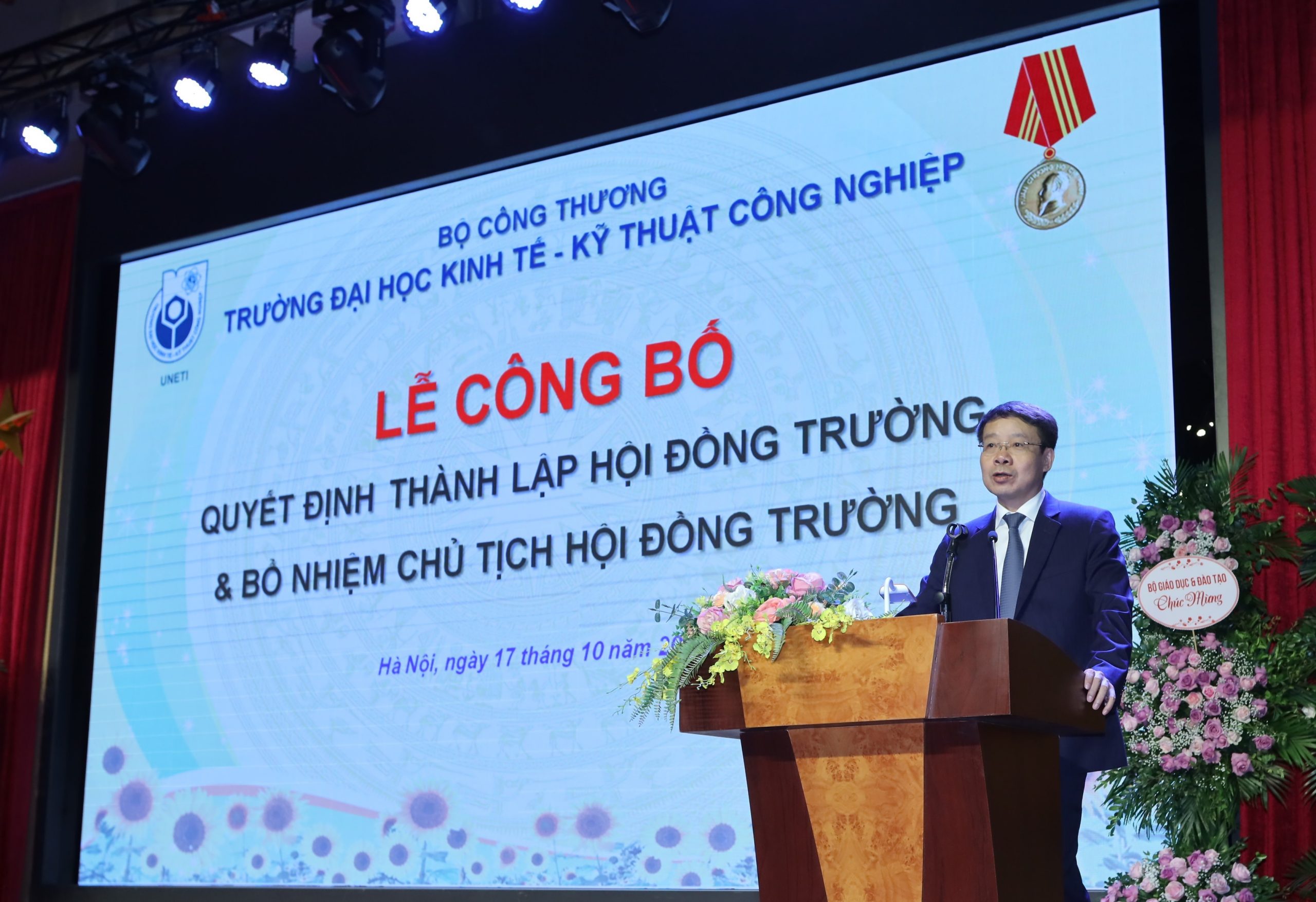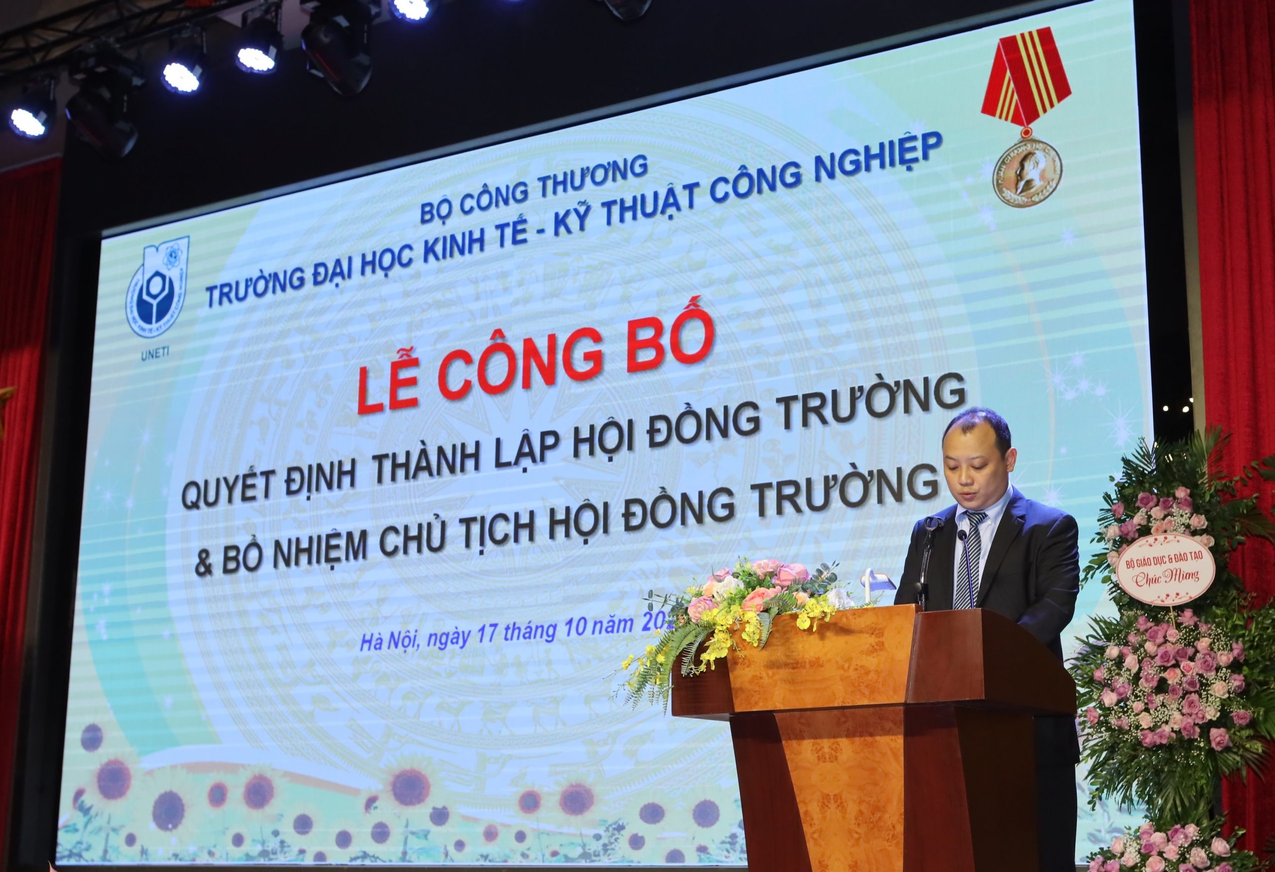 Thay mặt Ban cán sự Đảng Bộ Công Thương, Ông Lý Quốc Hùng – Ủy viên Ban cán sự Đảng, Vụ Trưởng Vụ TCCB, Bộ công thương đã lên trao Quyết định thành lập Hội đồng trường và Quyết định Chủ tịch Hội đồng trường tại buổi lễ.
