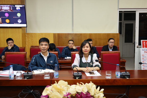 TS. Phạm Thị Thu Hoài – Thường vụ Đảng ủy, Chủ tịch Hội đồng trường cùng các thầy cô giáo tham dự chương trình tại hội trường HA.8 cơ sở 218 Lĩnh Nam, Hà Nội