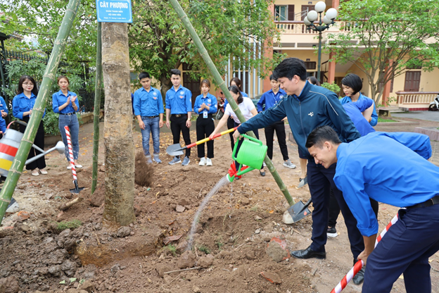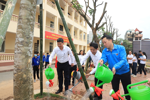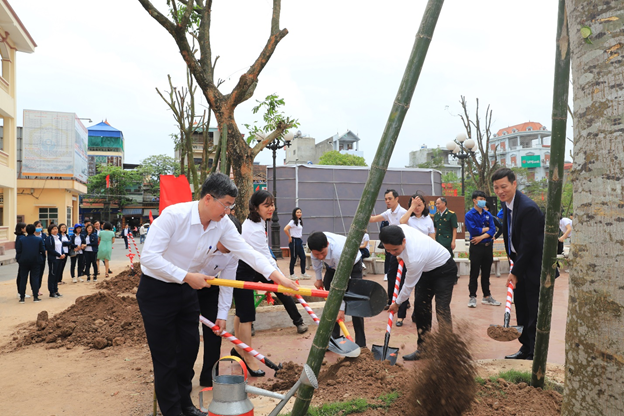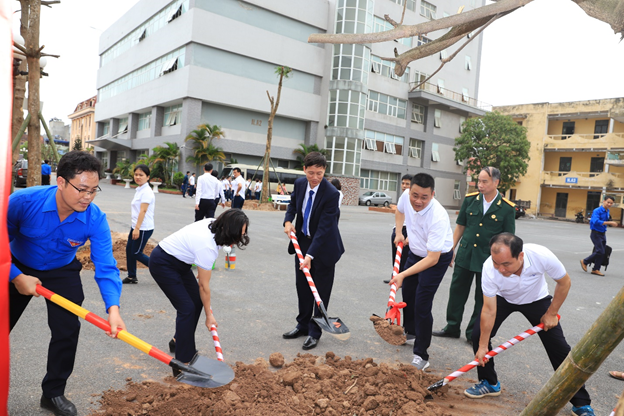 Sau Lễ phát động, các đại biểu cùng toàn thể cán bộ, giảng viên và sinh viên Nhà trường đã trồng hàng trăm cây xanh trong khuôn viên Nhà trường tại cơ sở 353 Trần Hưng Đạo và Khu xưởng thực hành Mỹ Xá – TP Nam Định.