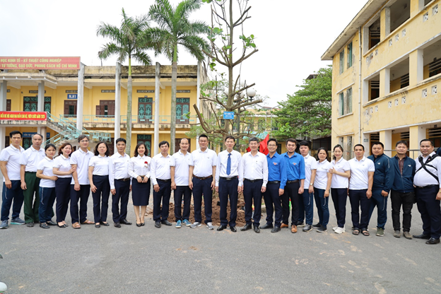 Đồng chí Vũ Hữu Thi – Tỉnh ủy viên, Bí thư Đảng ủy Khối các cơ quan và doanh nghiệp tỉnh Nam Định dự và tặng bức tranh Bác Hồ trồng cây cho Nhà trường