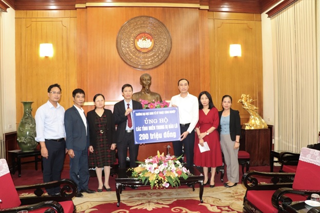 Đoàn thanh niên CS HCM và Hội sinh viên Nhà trường ủng hộ đồng bào thông qua Trung ương Đoàn thanh niên số tiền là 20 triệu.