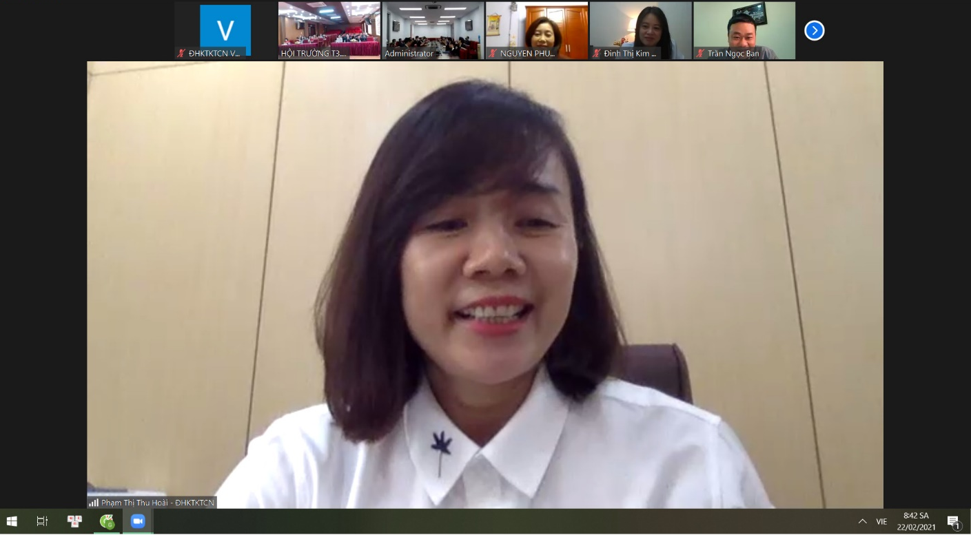 TS. Phạm Thị Thu Hoài – Chủ tịch Hội đồng trường tham dự chương trình thông qua ứng dụng họp trực tuyến Zoom