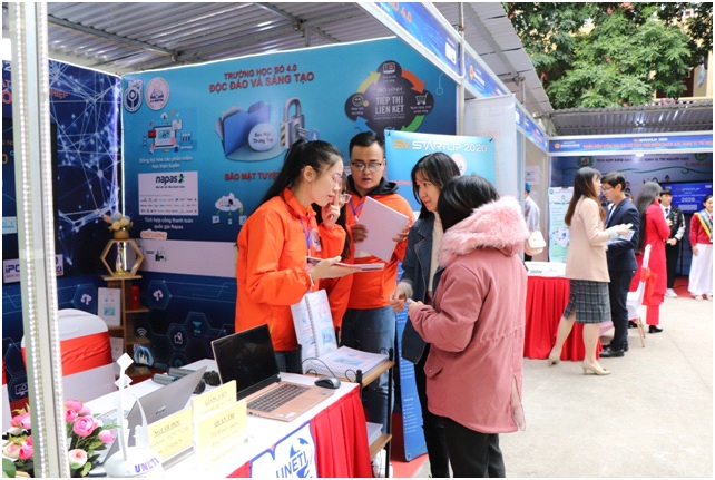 Khách mời trong cuộc thi ghé thăm gian hàng “Trường học số 4.0”